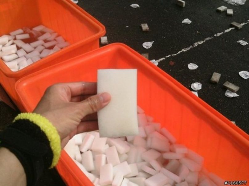 為講求環保全程我只選用一塊海綿並隨身攜帶,在有水的地方略事清洗後還能重覆使用。