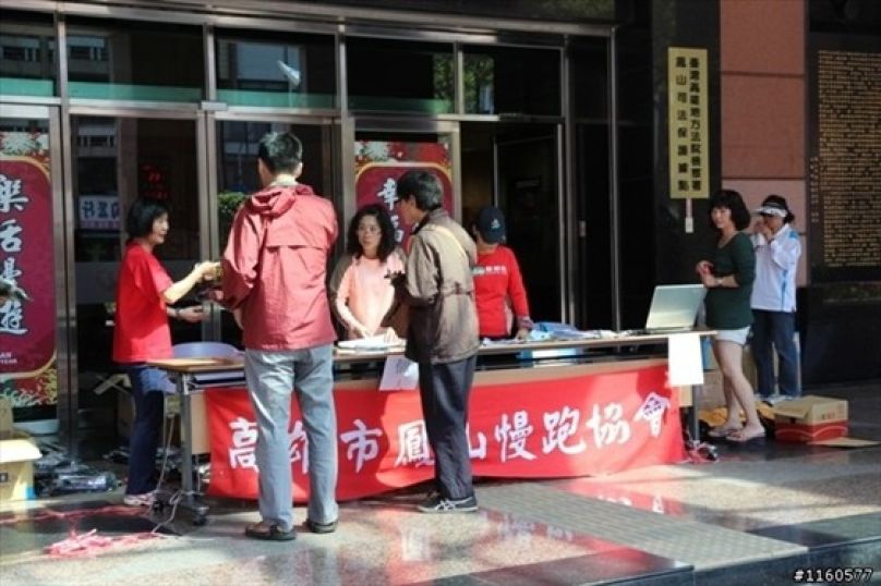 受理報到的志工總是笑容可掬的問候跑友的辛勞,陽光般的親切態度就像鳳山的太陽一樣讓人溫暖。