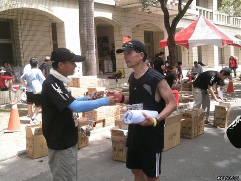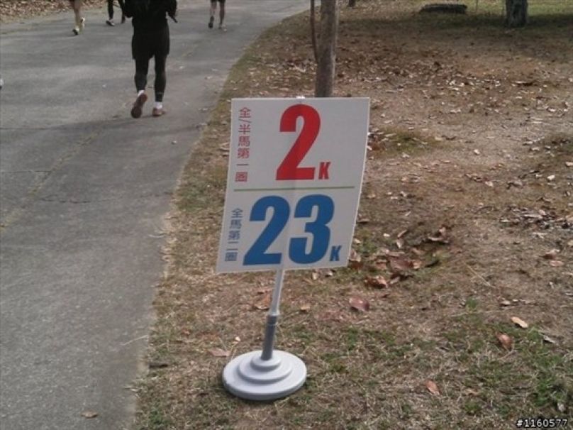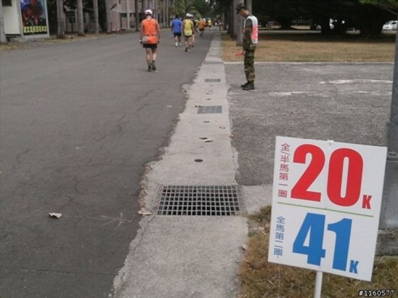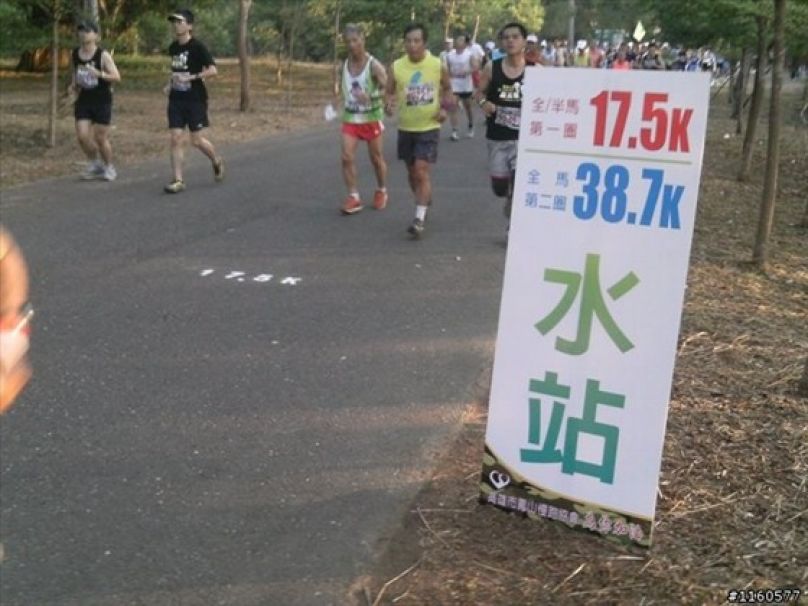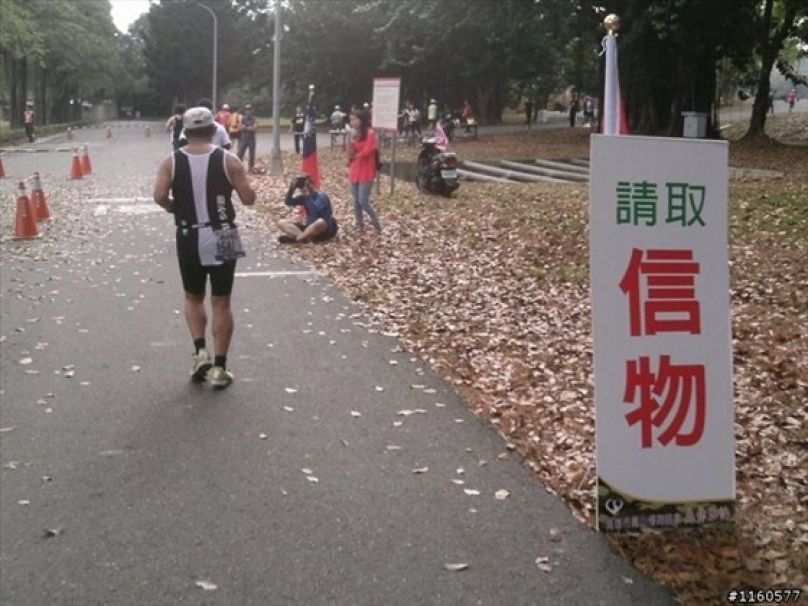 終於抵達發放「信物」的地點,代表半馬選手已完成一半賽程!