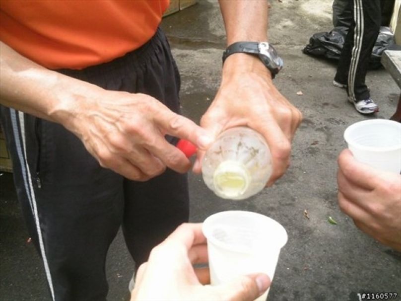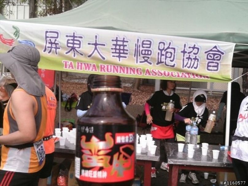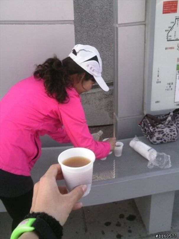 據說喝起來很香甜,馬上就能感受到無比活力,讓跑友大排長龍,人人等著品嚐這好喝又補充能量的飲品!