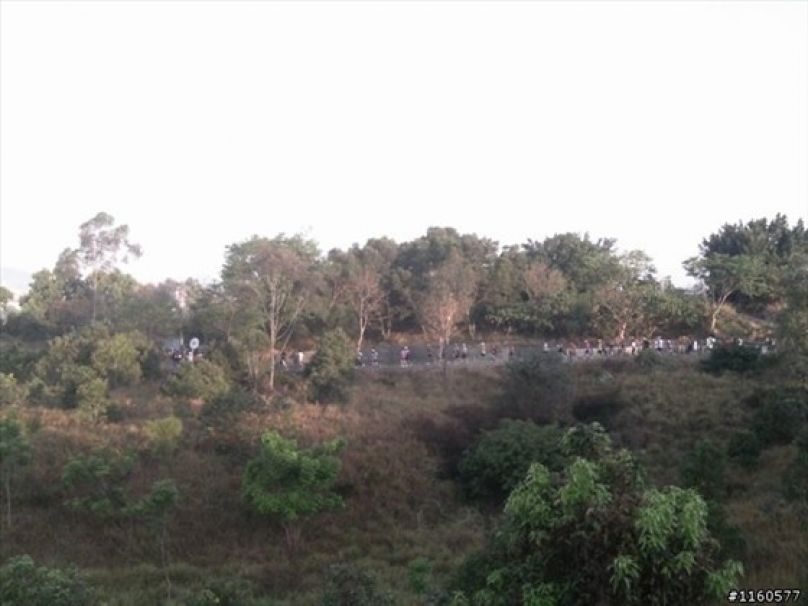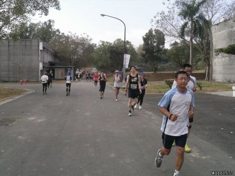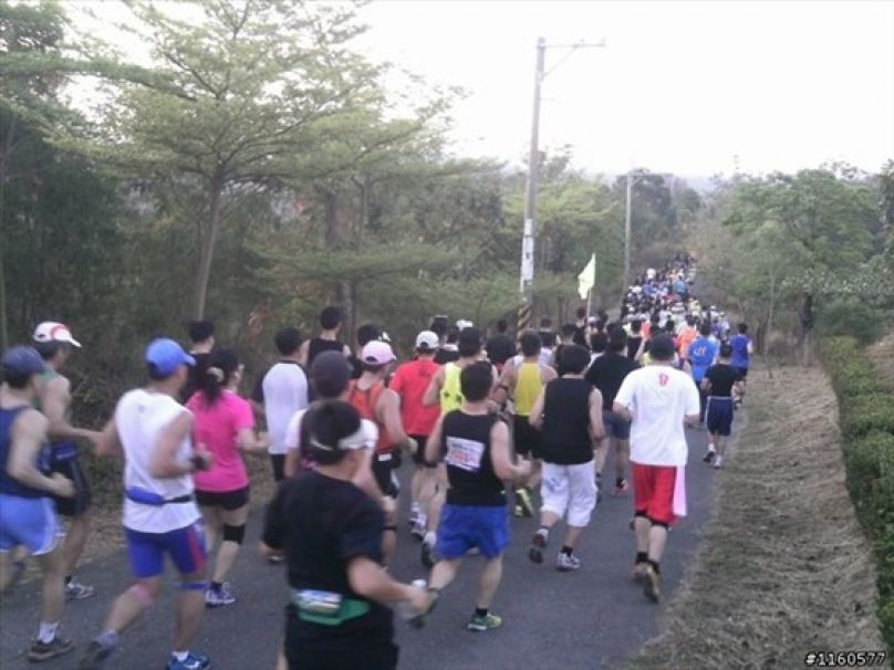 由於全馬半馬一起出發,官校後山山路更是人滿為患。官校後山戰鬥教練場有連續的上、下坡,跑友依序跑動,長長的人龍讓想快的人都沒有機會加快腳步。