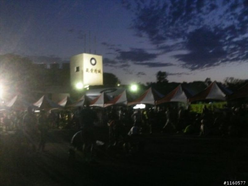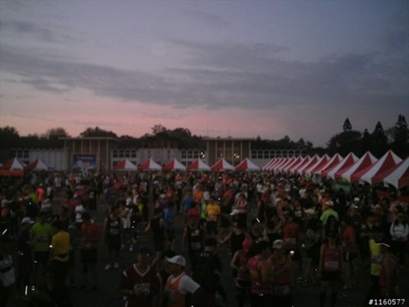 一早六點開跑的賽事,選手們到場時,天未亮,會場只剩帳篷中的燈火。