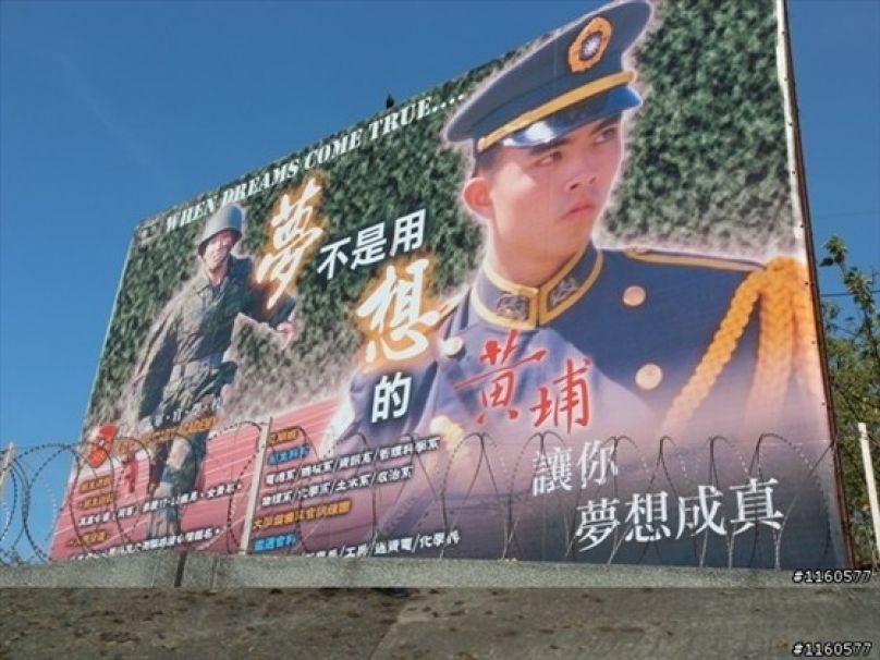 離開官校前再看一眼陸官招生海報。我想說:「馬拉松的「夢」不是用「想」的,來到鳳山跑一回「三校馬」就能讓您美夢成真!