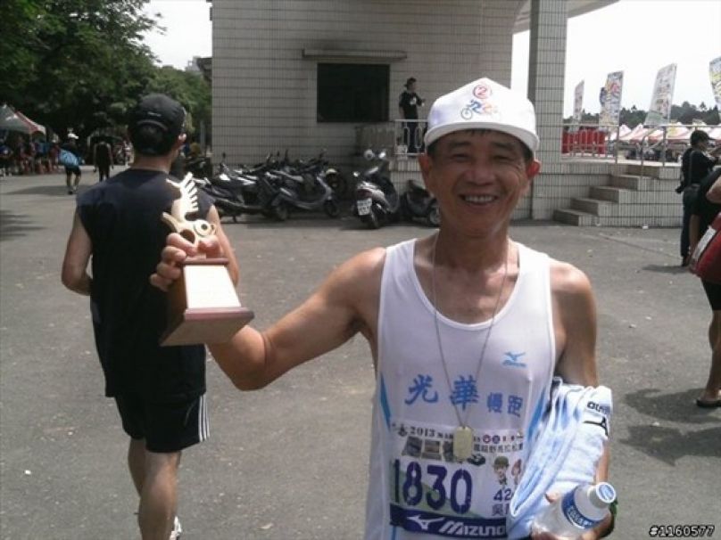 來自光華慢跑的吳大哥今年五十出頭,終於在跑三校完成難得的初馬獎項,真的不容昜!