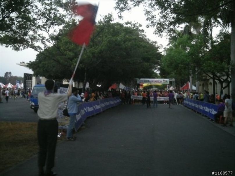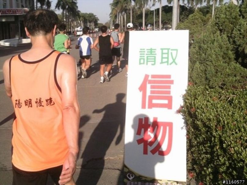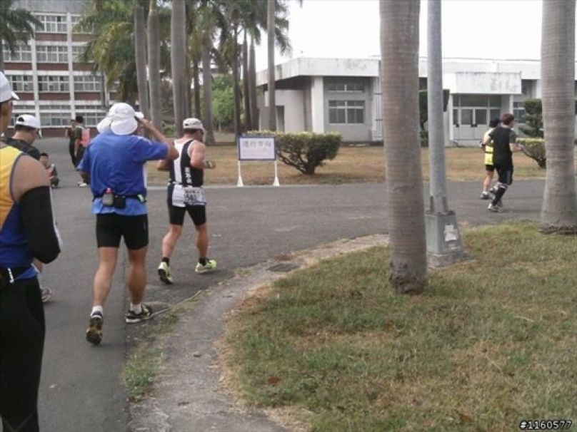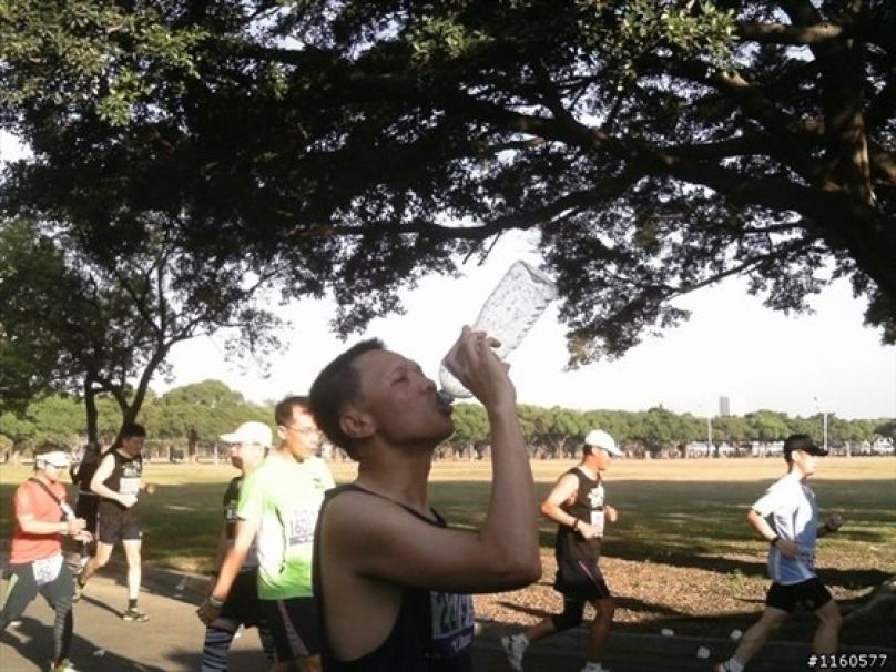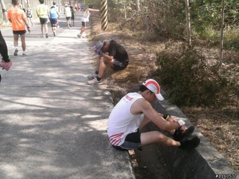 時間剛過九點,花了三個多小時跑了三十多公里,體力有些疲憊,看到許多的跑友仍繼續賣力奮戰,於是我忍受高溫炎熱的日光浴,並開始自我催眠開始「對日抗戰」。