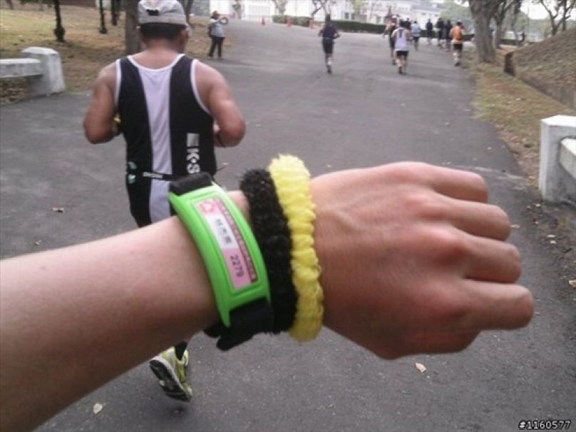 今年大會選用與往常不同的計時糸統,改以不需回收的腕帶晶片來感應計時,有跑友質疑能否精確計時?參加過很多單車活動與路跑,晶片掛在胸前或腿上都能感應。出發前一定要將晶片牢固於手腕,出發時晶片感應出發時間,回到終點時第一時間感應抵達時間,才能得到正確的成績。