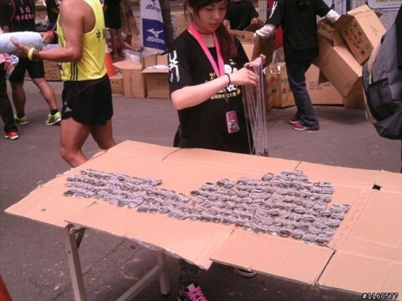 看著不斷試圖解決故障的工程人員,還有腳下一堆空白的完賽証明,「暇不掩瑜」的感覺油然而生,據說由於時間拖延過久,部分女性選手等不及領取完跑證書氣憤離場,也是小小意外插曲。