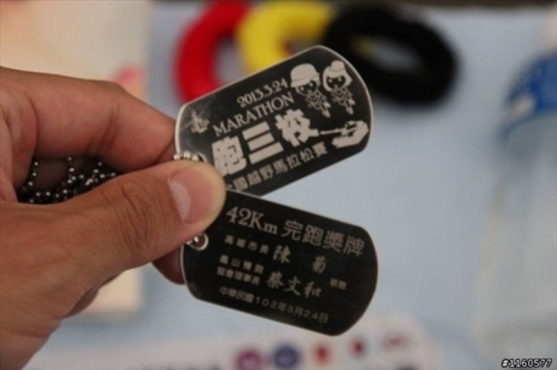 - 白鐵精心打造的完賽獎牌是模仿美軍制式的兵籍號碼牌,它有兩面可以隨時帶在身上所以號稱為可以隨時展示的完成獎牌。