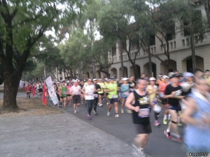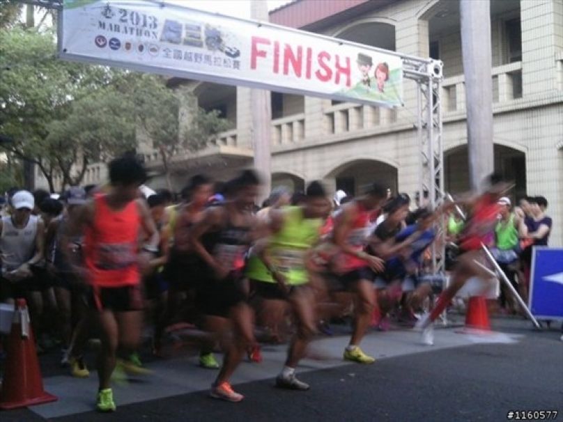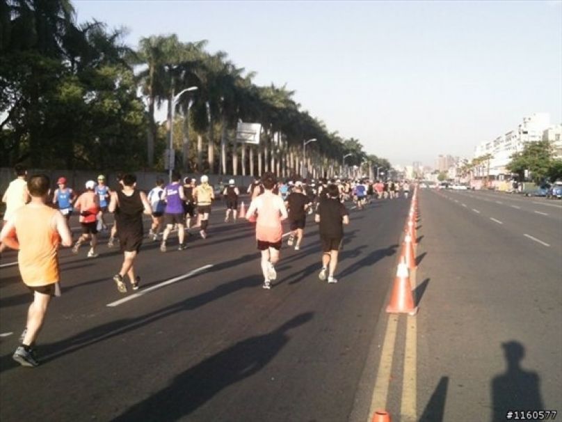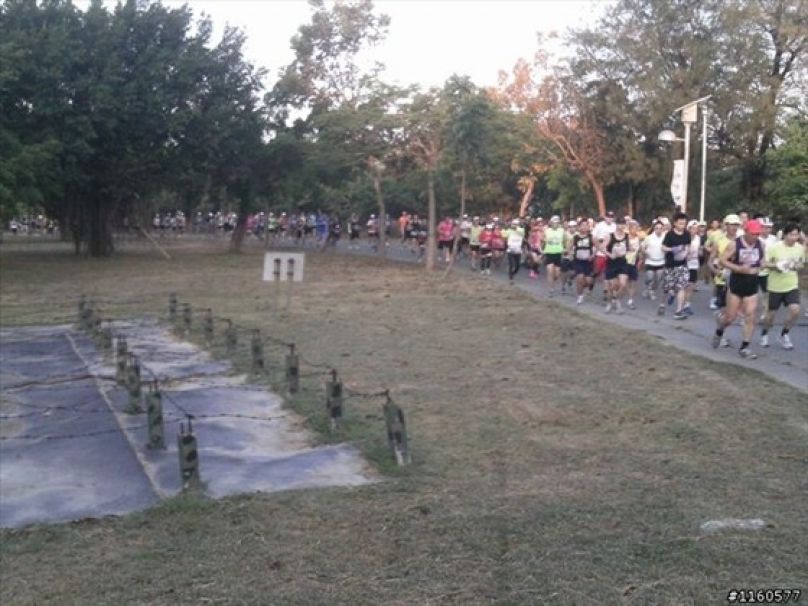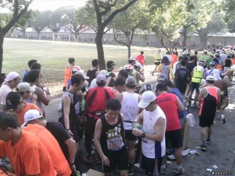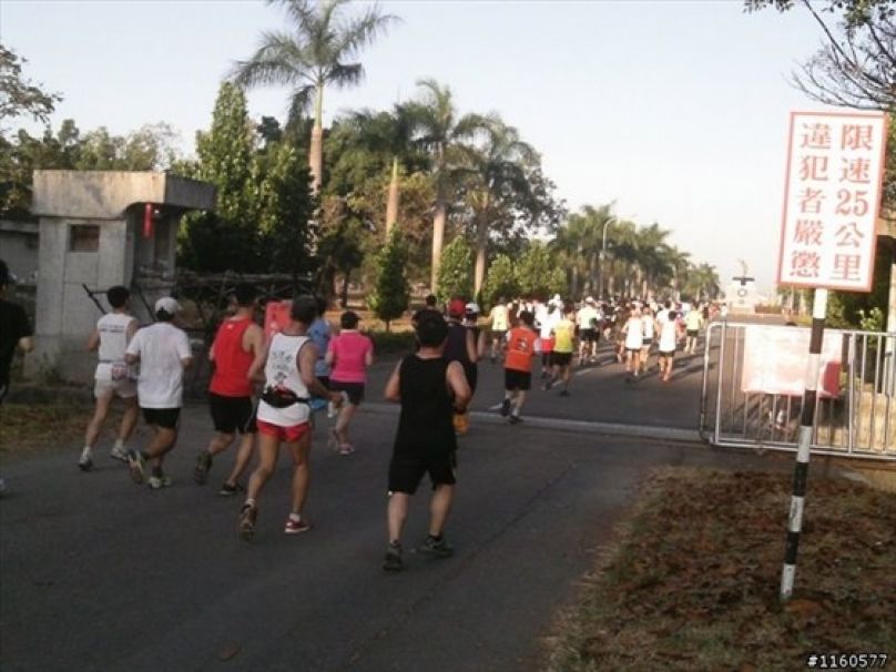 集結開跑,計有近五千名選手報名參賽,最前面都是有希望得名次的選手,長長人龍無盡延伸到官校大門,只能用「萬頭鑽動」來形容馬拉松熱烈的場面。所有選手都準備好了,只等起跑信號一響就能立馬出發。