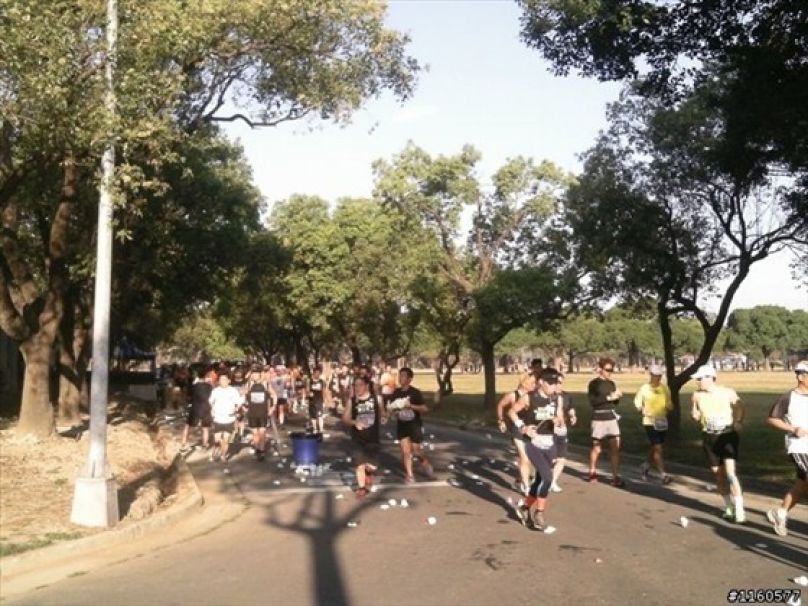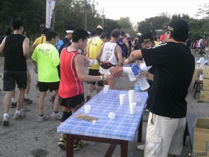 比起前幾屆的賽程,今年路跑難度提高很多,還不到八點氣溫已飆高到30度左右,運動飲料成為跑友的最愛,在人群過後統統喝光光…。