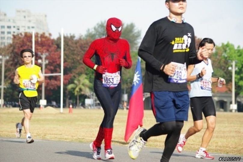 被蜘蛛人刷卡一定很意外,真的很敬佩他穿著厚重「戲服」仍可完賽的意志力。 (感謝fenton提供照片)。