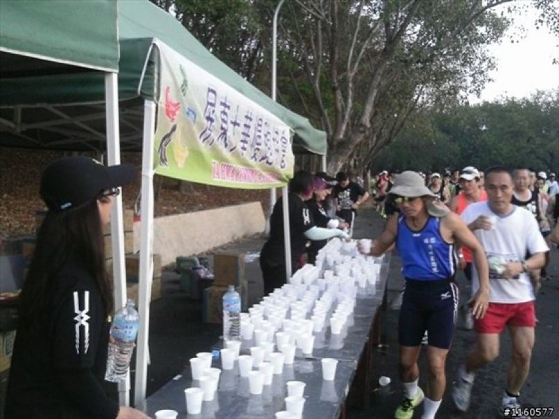 還有熱情跑友私人提供退火聖品綠豆湯。沒想到綠豆湯一推出,很多識途老馬的跑友蜂湧而上,倒的速度比不上車友喝的速度…。