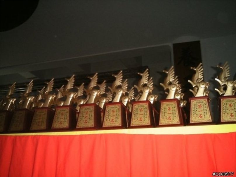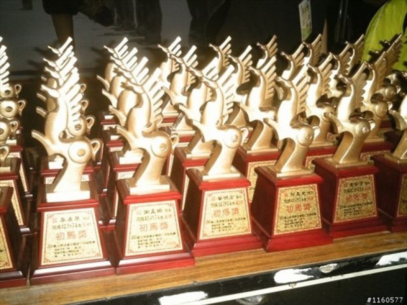 初馬獎杯正式亮相,一群「金馬」閃閃動人真是超閃的,這可是純金馬獎,大會還細心在獎座上打印上名子以示隆重。