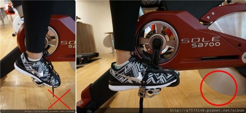 1.騎乘中,屁股坐在椅墊正後方並坐滿椅墊,腳底板向下踩時要維持平面下去 。