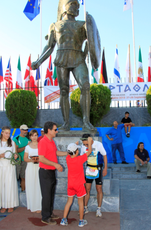 話說2500年前有一名士兵「Pheidippides」在古希臘的戰役中為了傳遞訊息,從雅典徒步跑到斯巴達而倒下,後來,為了紀念這段感人的故事及感動戰士的精神,就有了從雅典跑到斯巴達的賽事 (Spartathlon following the Steps of Pheidippides) 。