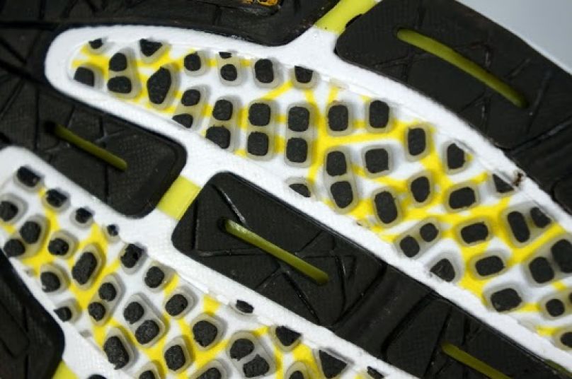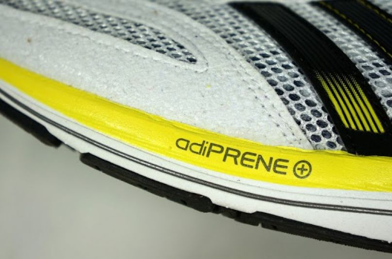 前腳掌使用adiPRENE+高彈性聚合物,主要目的在於增加腳掌推蹬時的反彈效果;adiPRENE+不若近來流行的BOOST材質一般Q彈,是較為溫文的回饋,輕鬆跑時甚至不容易感受到回彈的感覺,但高速巡航時就能體會到adiPRENE+紮實支撐與順勢推進的跑感。