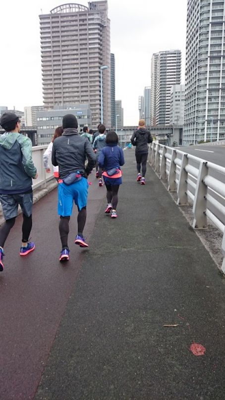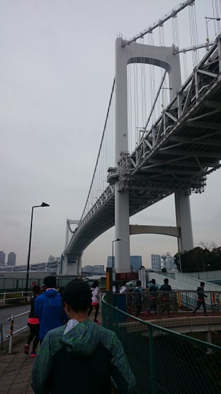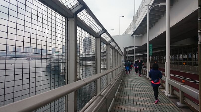 從PUMA BRAND CENTER TOKYO出發,分做三組的媒體,分別由PUMA全球鞋類負責主管管尾孝平與日本新生代馬拉松選手松本昂大領軍,跑向東京著名的景點:彩虹大橋。彩虹大橋位於JR山手線田町站附近,橫跨東京北端,連接港區芝浦與台場,可以飽覽東京城市忙碌的寧靜,於除夕至元旦間,則會使用日間儲存的日光能量,畫作夜晚一道橫跨港灣的彩虹。