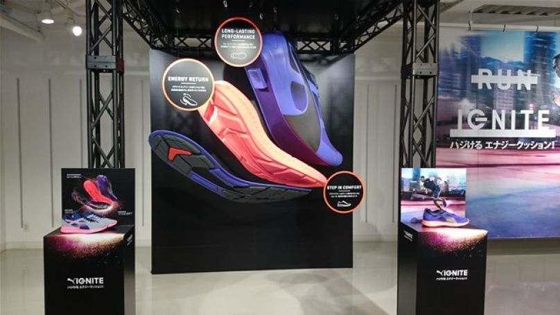 暨2/10於紐約時代廣場世界在第一飛人Usain Bolt加持下點燃起跑,2/17來到了日本東京,於發表記者會會後,PUMA邀請現場媒體換上這雙全新科技IGNITE來到東京市內走一遭,一同點燃東京市。