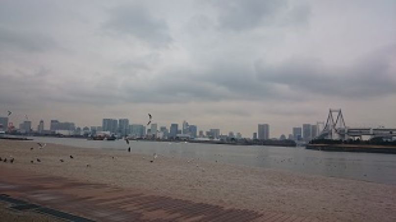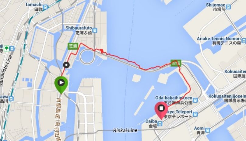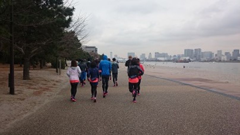 有別於柏油路面,橋上的地面是磚塊拼貼,凹凹凸凸的帶點濕滑,但也因為天冷加上IGNITE的彈性、不容易感到疲累也越跑越順。在下了橋之後,我們跑到了御台場海濱公園,交錯的樹枝整齊劃一,從柏油路面跑到泥土上,不同的觸感,在IGNITE的輕巧卻厚實的避震下,其實一路上的路感都差不多,一樣的柔軟。而身旁一邊是林一邊是海的景緻,即便當天天氣欠佳,仍然可以感受到迎面而來的閑逸。