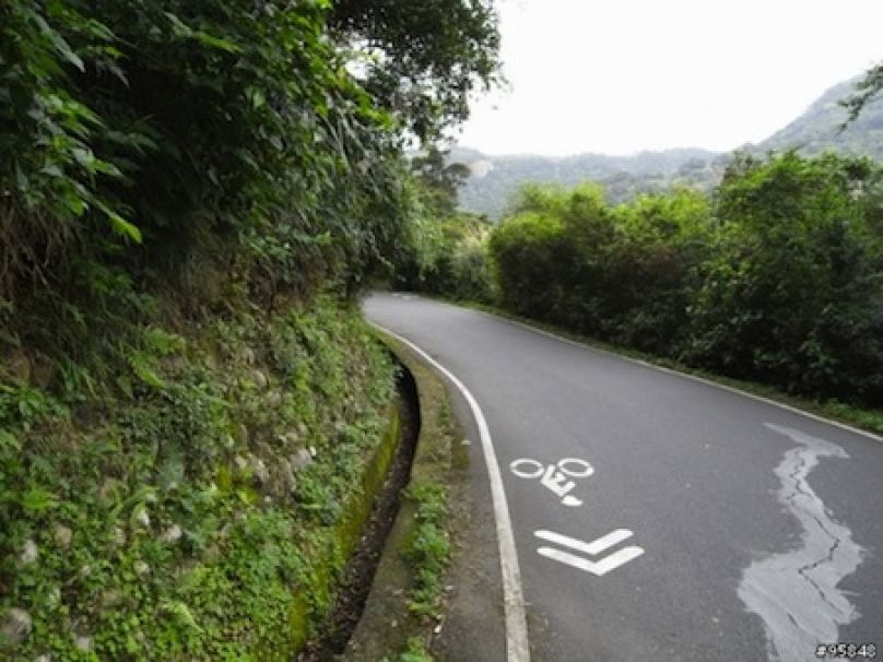 下圖是實景圖,實際距離路面最高點約只有15公尺,可是15公尺後的路況完全是一片空白。