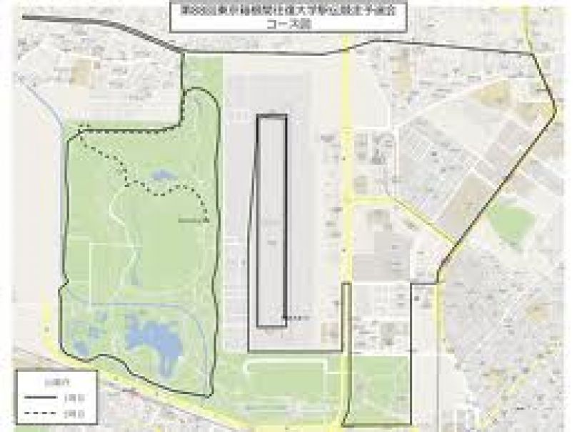 舉行地點路線,橫跨陸上自衛隊立川駐屯地?的飛機滑行跑道、立川市道路與昭和記念公園,總長共20km。每年固定於十月份中旬,各校出賽12名選手,取最高前十名的成績加總 (參賽選手的門檻為:10,000m34分00秒或5,000m16分30秒以內)。