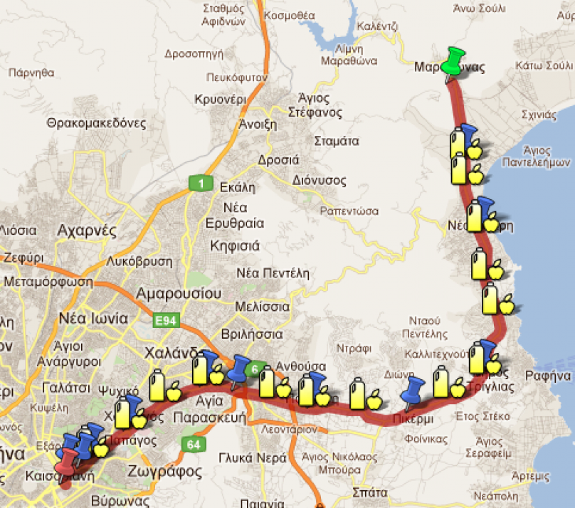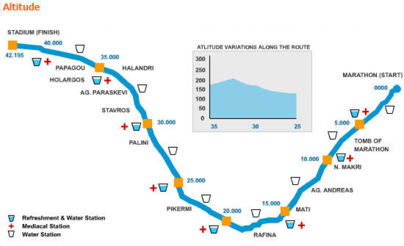 <雅典古典馬拉松>起跑前會有一段嚴肅的開幕,地點在馬拉松墓 (Marathon Tomb) 前,裡面埋葬2,500多年前奮戰的雅典士兵。傳統儀式進行到最後,將點然聖火,帶領跑者前往起點開跑。起點仍和首屆奧運出發處相同,那裡聳立一座石碑,上面刻有數字40,代表與雅典城的距離。前段路線有不少緩坡,之後就慢慢向下往雅典城前進,終點在帕那辛納克體育場 (Panathinaiko Stadium)。