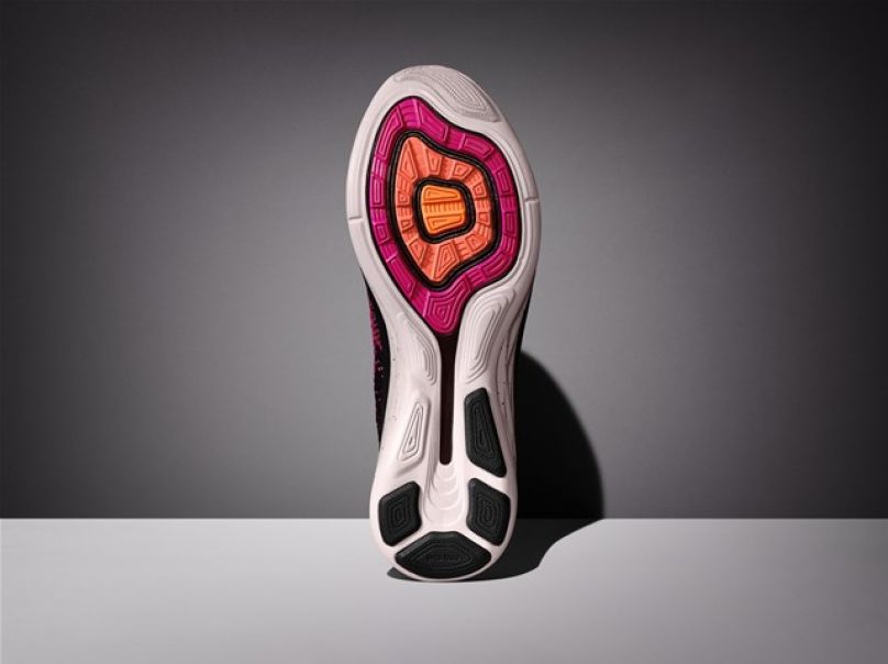 慢跑鞋範例:Flyknit Lunar 3,輕量貼合的鞋面、搭配適中的前後落差與具有回饋彈性的中底,讓步伐更為自然流暢(圖片來源:NIKE)