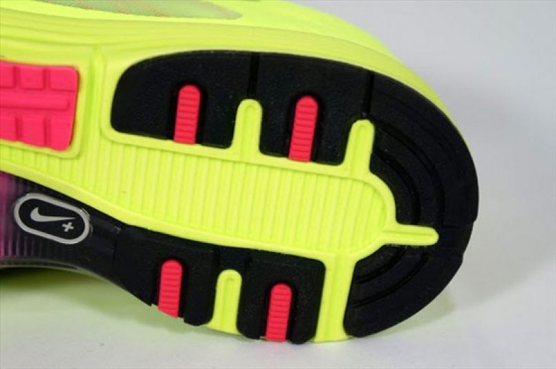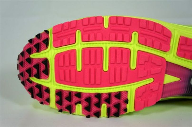 LT+3的大底採用區塊配置、依不同部位設置相應的材質,且可以看到鞋底挖空與開溝範圍不小,如此可以增加鞋底的靈活度,讓lunarlon中底充分發揮避震效果,也能減輕跑鞋的重量。