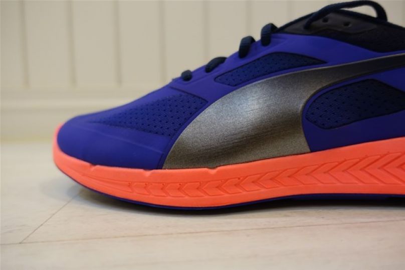 PUMA IGNITE的無縫式鞋面,採用透氣網布搭配貼合式裁片,兼具包覆與透氣特性,並具有輕量與舒適的效果,鞋身左右兩側大片銀灰色PUMA經典飾條,除了提供鞋身兩側包覆貼合,也增添了一股時尚感,鞋身剪裁上也維持PUMA一貫的精實俐落線條。