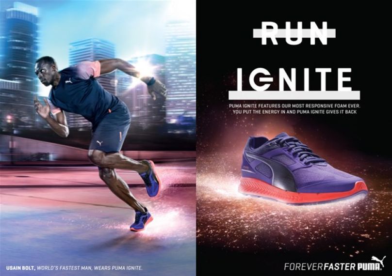 此次PUMA特地邀請素有「閃電飛人」之稱的尤塞恩·博爾特(Usain Bolt)擔任此款跑鞋的全球代言人,引領全球跑者穿上PUMA IGNITE,激發跑步極速潛能,超越自我極限。