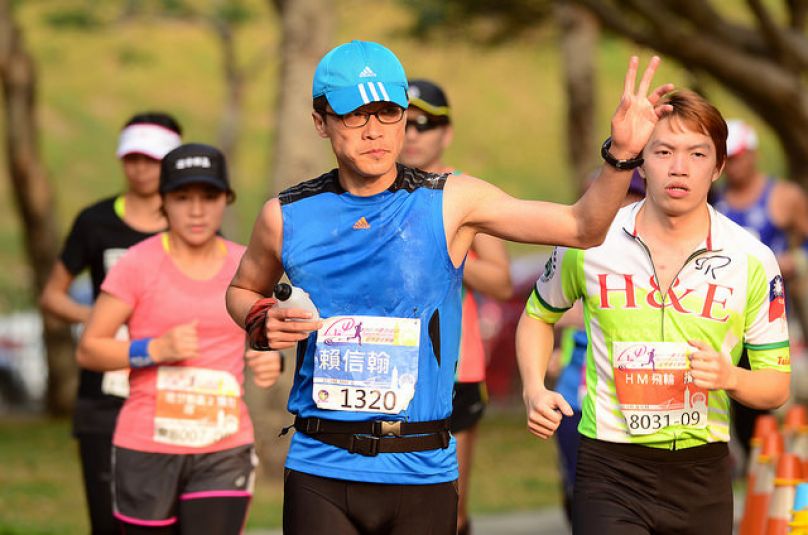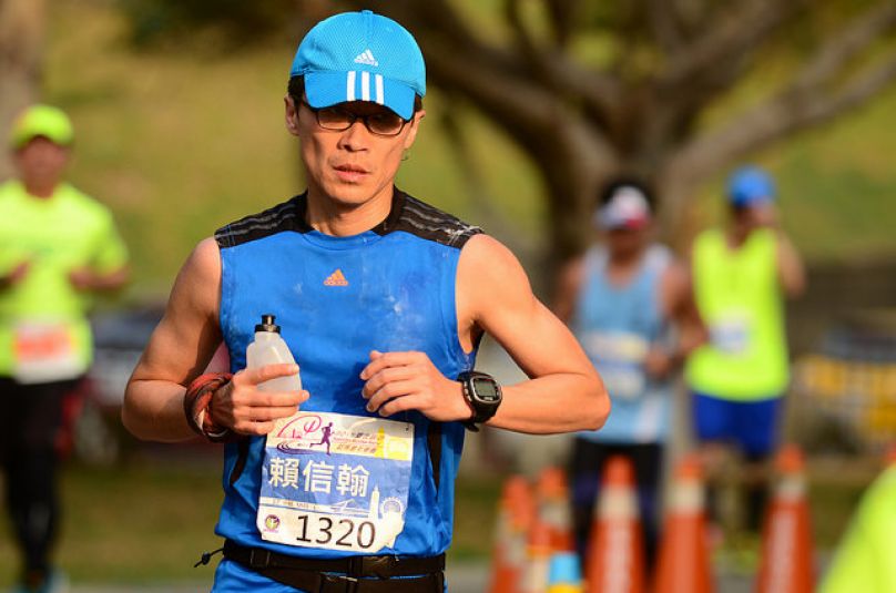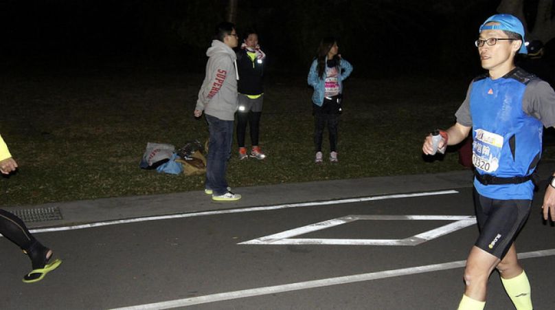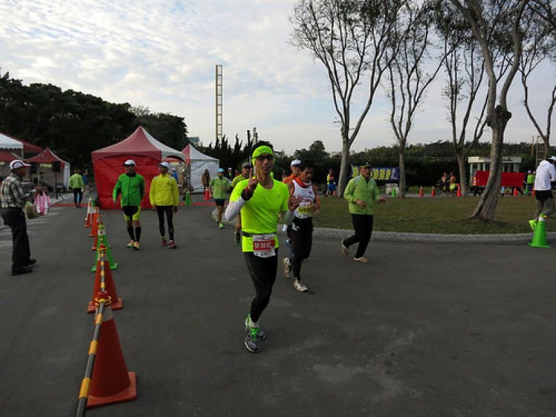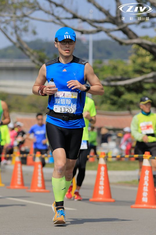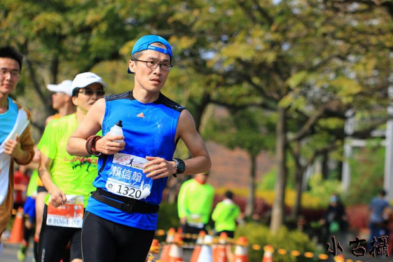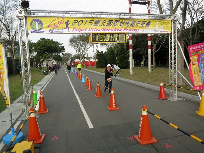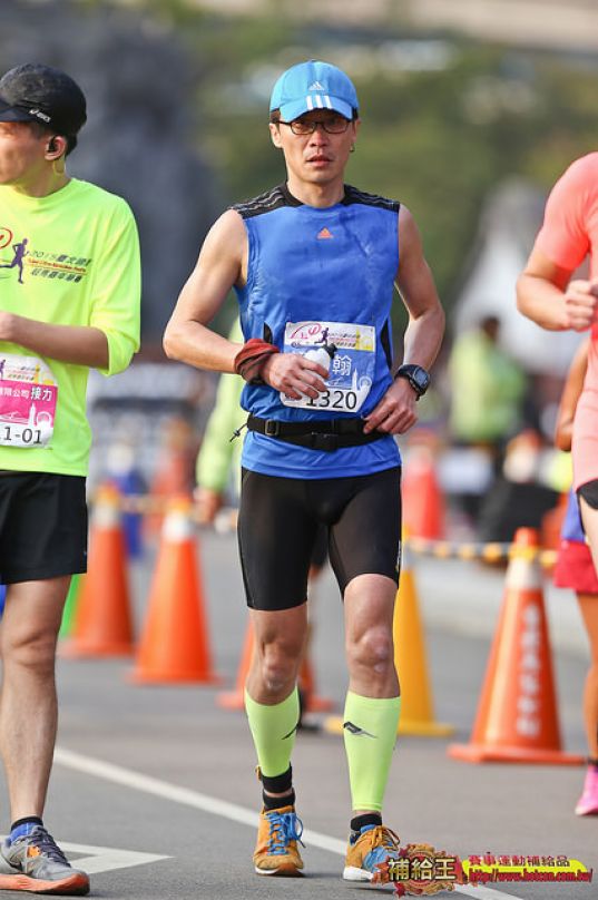 大島先生維持著每公里約四分半的速度穩步前進,看他跑得輕輕鬆鬆的,腳步很輕,表情也有如在逛街一般,剛開始我都還能跟得上,只是在我身上就看不到那份輕鬆感。但越跟越覺得心慌,心想如果繼續以這速度跑下去,肯定四小時就要打包回家了,於是在10公里後,決定放過他,以自己的速度來跑。八點鐘鳴槍起跑,這場比賽最大咖的是來自日本的大島康壽OSHIMA Yasutoshi,他是日本24小時賽的國家代表隊選手,完全是拿這場12小時賽來練兵的。賽前在起跑線上與他互道加油,開跑後我就追著他的後面跑。