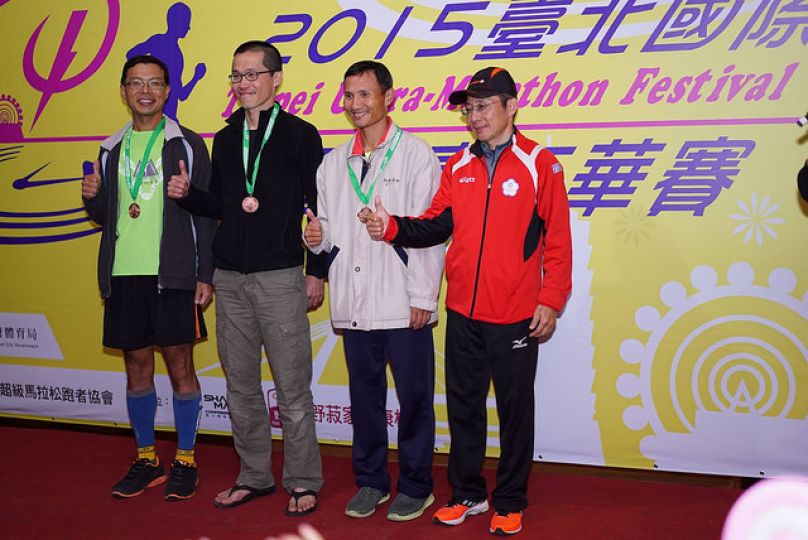 與吳敏祥大哥合影,恭喜他獲得M50組分組第二(照片來源:賴信翰)