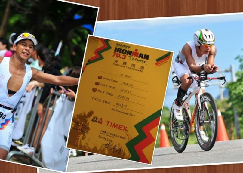 終於在2012年11月初的這場Ironman 70.3 Taiwan國際三項鐵人邀請賽中看到了跳躍性的進步,40分游完1900公尺的海泳,2小時52分包含了兩個轉換區及騎完90公里,而21公里的半程馬拉松因為半途抽筋以2小時7分完成,最後以總成績5小時41分完成了我第2場的三鐵賽事,進步了1小時14分鐘。