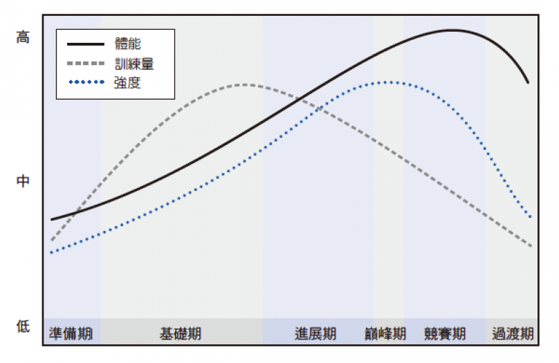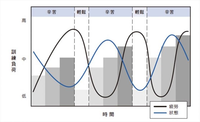 訓練的目的是為了在比賽日達到體能巔峰,必須將疲勞、體能和狀態三個要素達成平衡。「階段化訓練」是達成巔峰體能最有效的訓練系統之一,在不同的訓練時期有不同的訓練重點,讓疲勞與體能相互消長,俾使體能在最重要的比賽日達到巔峰。