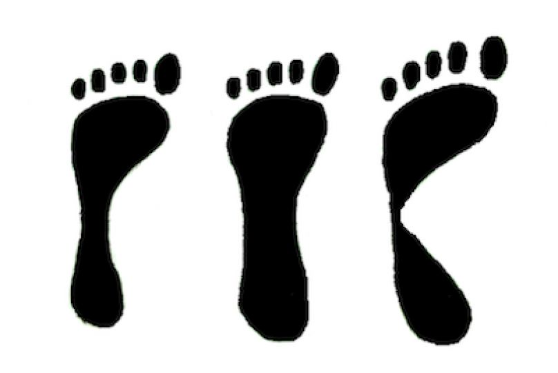 首先找一張牛皮紙(或報紙)平鋪在地板上,旁邊放個臉盆,裡面約裝四分之一的水。再把一腳浸濕,踩在牛皮紙上產生一個腳印,然後再換另外一隻腳。從留在紙上的濕腳印,我們可以將腳板的形狀分成三種: