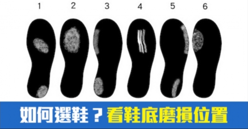 除了依自己的腳型來選鞋以外,也可以根據舊鞋鞋底磨損的情形來知道自己腳的狀況: