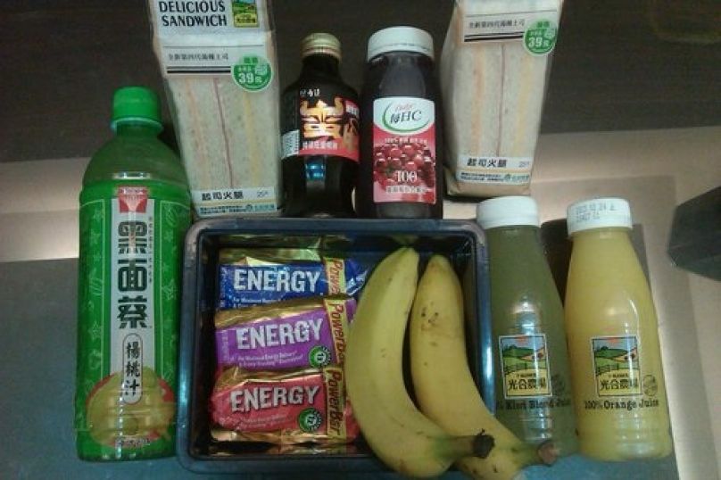 這是我私人補給品,由好友棠棠負責幫我補給,看起來很多,也沒有全部吃完,但分量是夠的,這也是繞圈賽的好處,可以準備私人補給品,好像遠足一樣興奮。