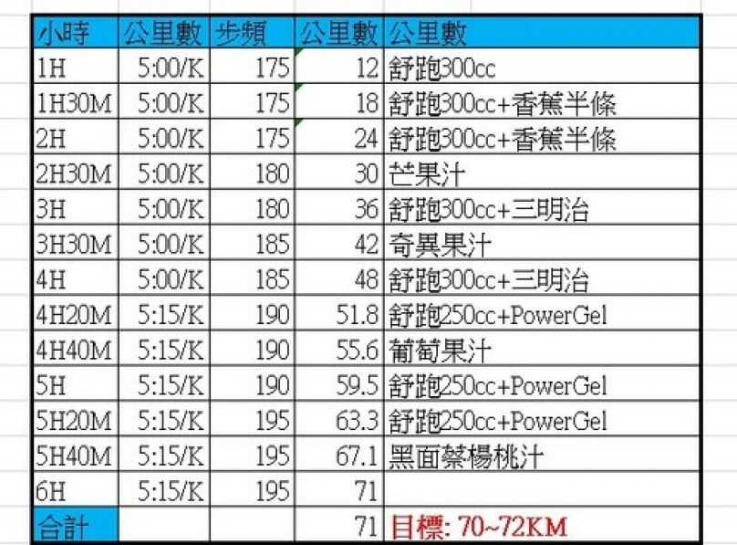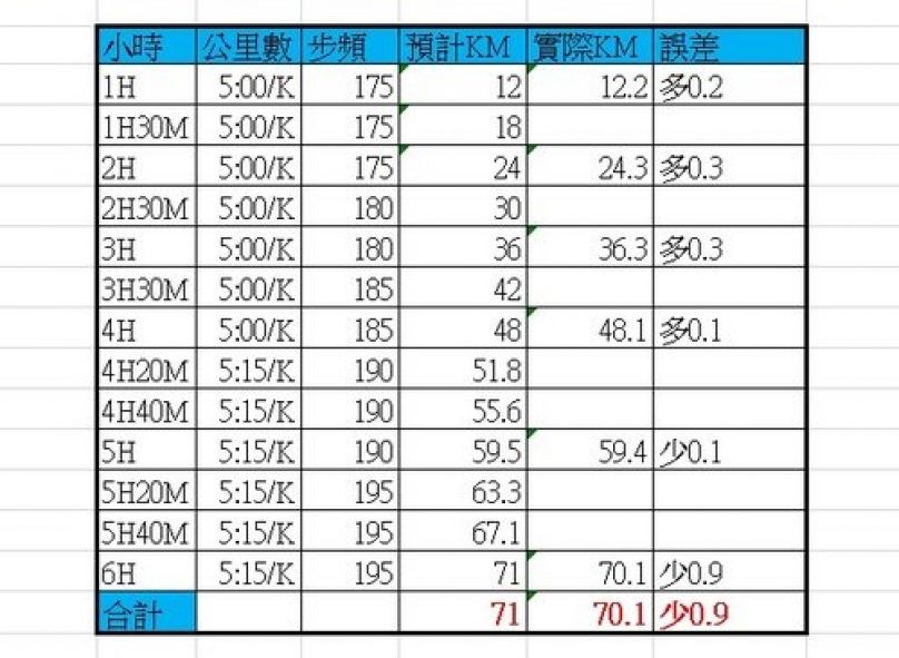 賽前分析的配速表與補給策略,一般都是按表操課。