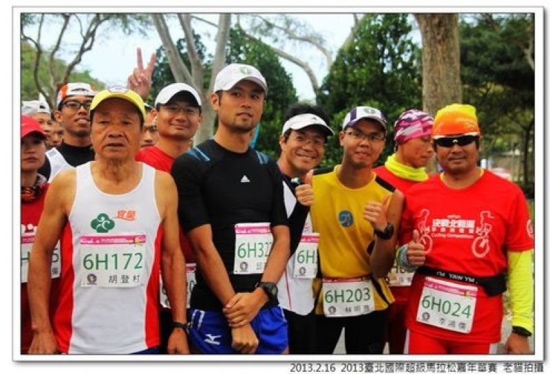 匆忙中趕到起點,看到攝影志工老貓陳,來張起點照吧,旁邊是隊友明彥,就跟他說,跟著我跑吧,他今天應該可以跑得比我好才對。
