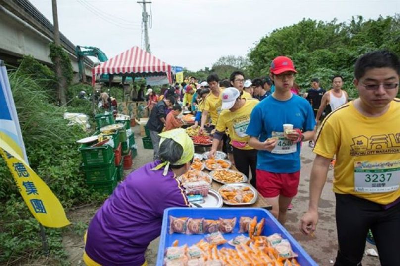 * 呂承達:「補給跟田中馬差不多,吃都吃不完,很給力!全馬賽後給米粉外,完賽後美食兌換券,想吃啥就換啥,多棒!」