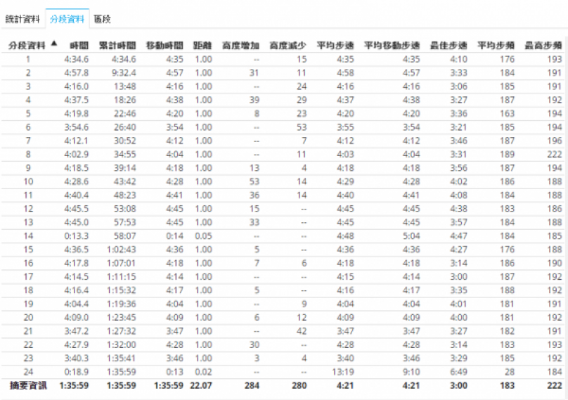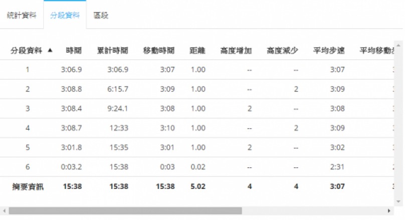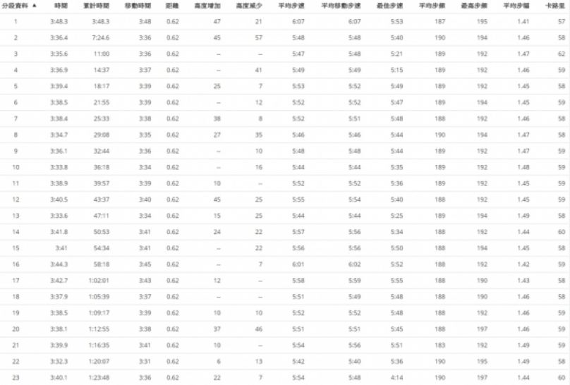 這是第一次帶上Garmin Forerunner 620測驗5,000m的分段計時,每1km偵測點算準確(圖片來源:陳秉豐)
