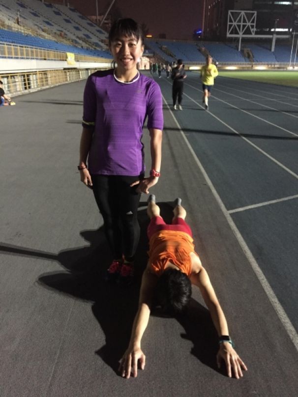 宇璿小妹就說:來一趟台北田徑場,我教你一個我們體大常練的秘技!
