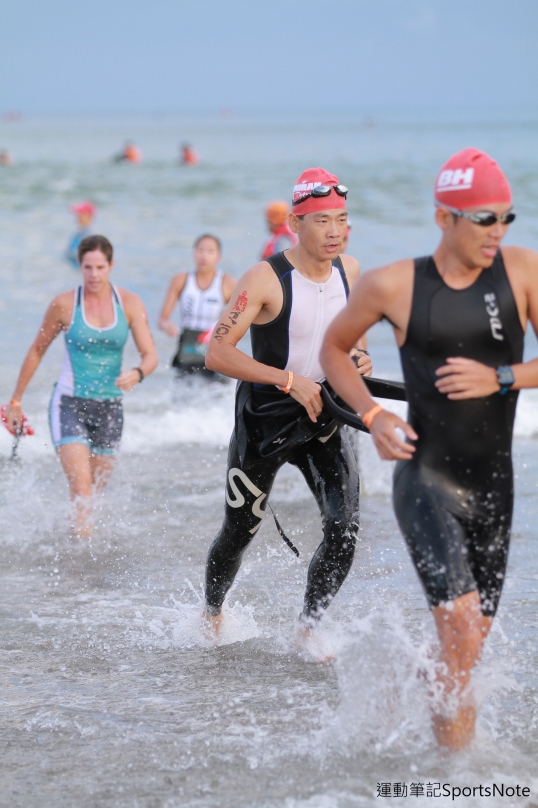 你需要一件下水時穿起來「不會感到胸悶和進水」的三鐵衣(或泳衣)、視野廣角較大的泳鏡,可以加上除霧劑(嚴防在水裡看不到方向)。至於泳帽,主辦單位都會發送,這方面不用太擔心。