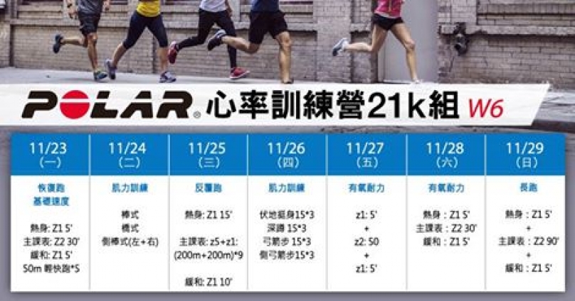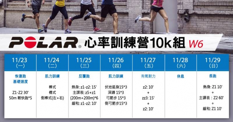鋒面來襲,可說是正式進入冬天了,訓練上最近幾週適逢反覆跑與接下來的間歇跑,跑前請務必做好熱身,可適度延長慢跑和動態伸展的時間,直到微微出汗了再開始跑主課表。跑完伸展時也別忘記披上衣服,保持身體溫度再進行伸展。