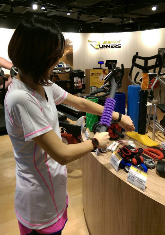 專業、熱情的門市人員Tommy協助了解「Runners 跑動時尚館」的各項健身器材,並詳細說明各項功能和親自示範使用方法,這代表門市人員除了專業的培訓,本身也都有在運動、健身,所以 Tommy 葛格也是有練過的呦!