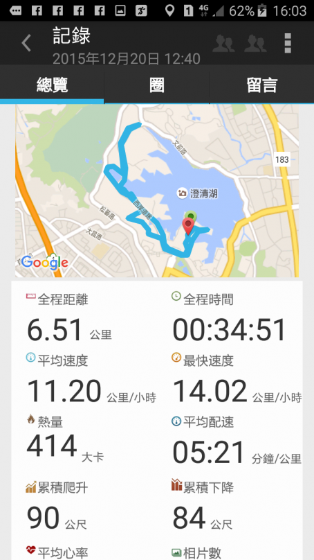 經過划船場,好漢坡到了,這段 400 公尺的上坡,是我常常用來跑間歇的路段,但是今次帶著昨日跑馬的疲累,不間歇,純粹感受跑鞋的律動。