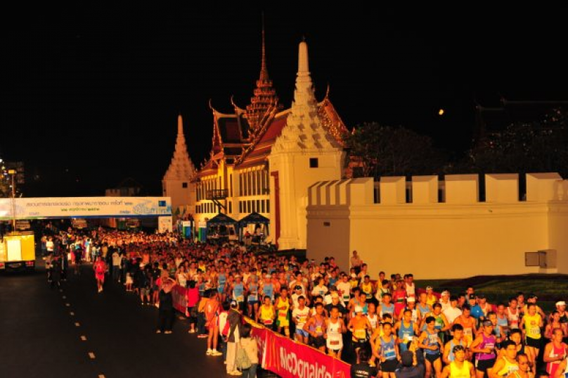 凌晨一點半,有晨跑習慣的跑友早就進入夢鄉,但曼谷馬拉松才要開始,很浪漫吧!即便起跑時間在深夜,民眾仍然會熱情地為你加油!起跑點設在大王宮圍牆外,國防部門口的瑟南猜路上(Sanman chai Rd.),從深夜跑到黎明,途經著名的大王宮、玉佛寺、國防部、五世皇柚木行宮、國會大廈、國柱廟、法政大學、國家劇院、臥佛寺,一次感受白天和夜晚的曼谷,你會看見不同的美麗。
