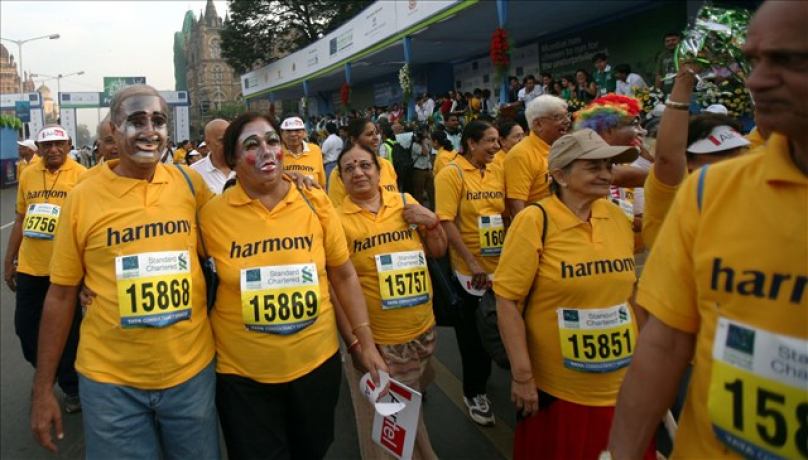 即便現代化在世界各地形成一股沛然莫之能禦的潮流,印度總是欣然地接受外來的文化,巧妙地點綴在印度豐富多變的色彩中,印度的文化思想、音樂、穿著,總是不隨時代而被淹沒。孟買馬拉松讓你體驗古文明的一切,2009 渣打馬拉松,還可以看見許多跑者化妝,身上穿著「和平」的衣服,跑步像是寶萊塢電影中的嘉年華,色彩繽紛、無限歡樂。