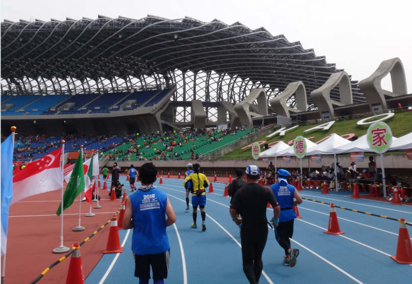 高雄馬最令人振奮的莫過於世運場館內的終點,過彎道看到拱門上的計時器,那正是自己的 PB 成績