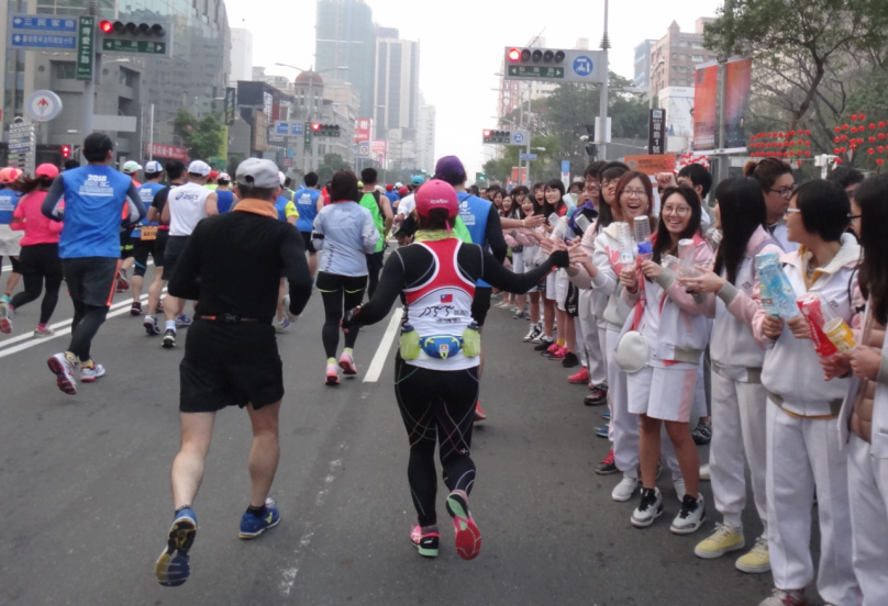 2016 高雄國際馬拉松,沿途的加油團相當熱情,滿足跑者心理與心靈需求